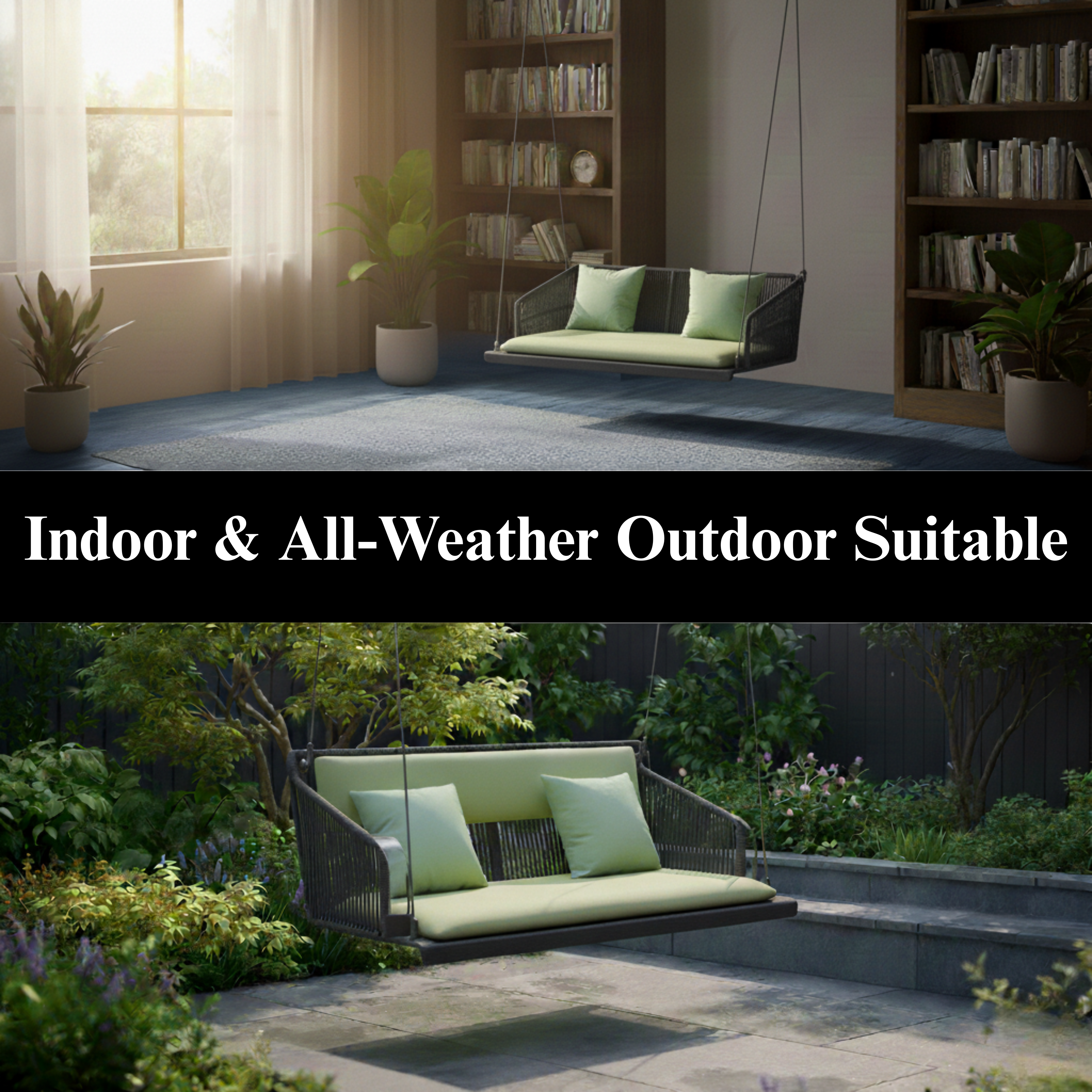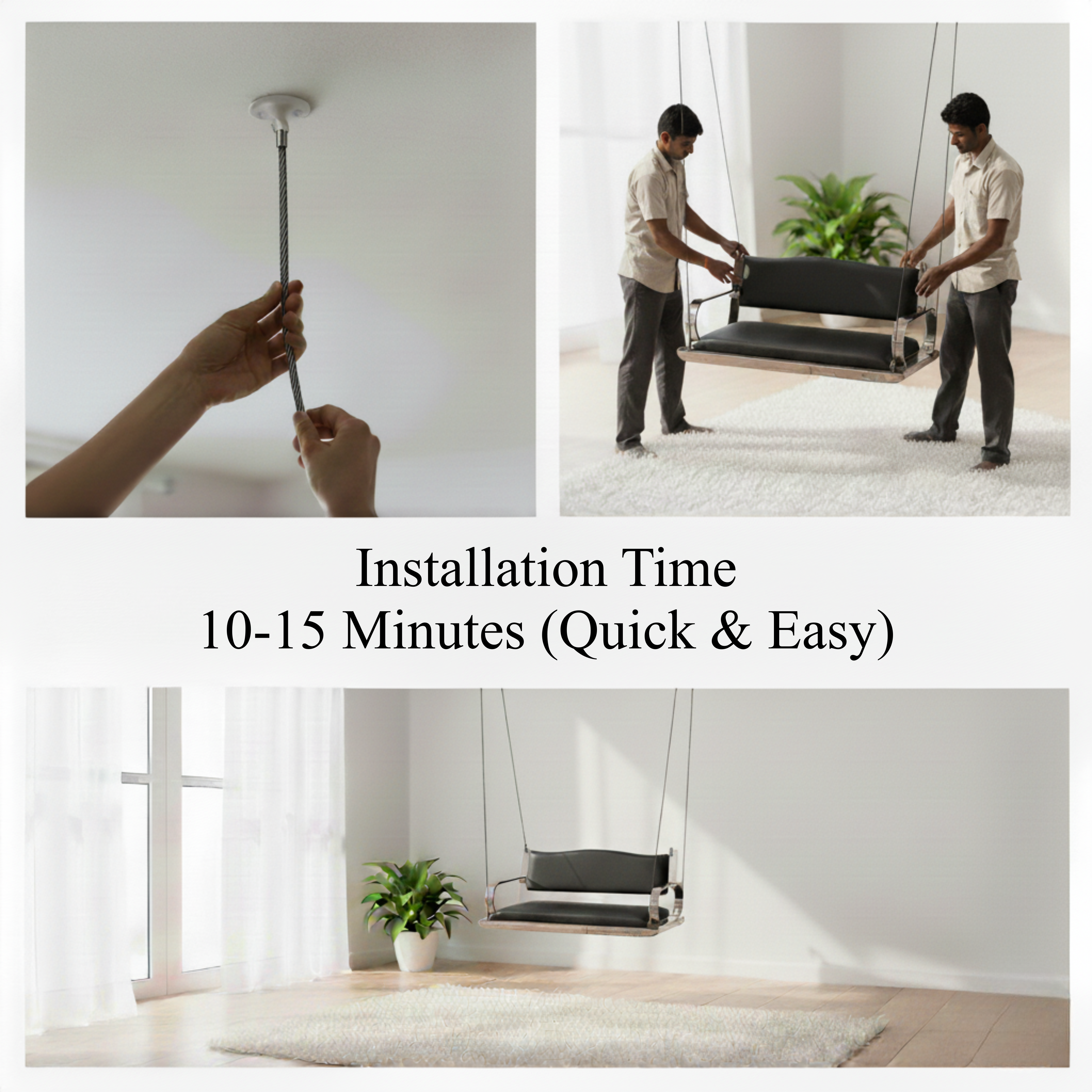 Transform your living space with this sleek and contemporary indoor swing bench....
